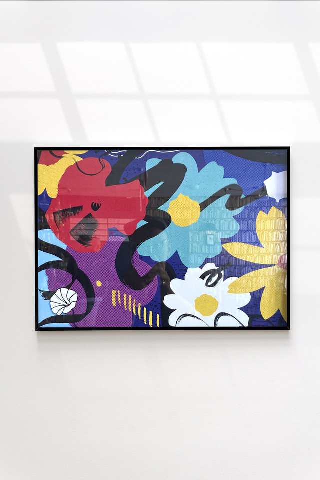 An artwork made from a year gathering pictures of flowers; using painting, drawing, collage and mark-making celebrating the joy of nature.
