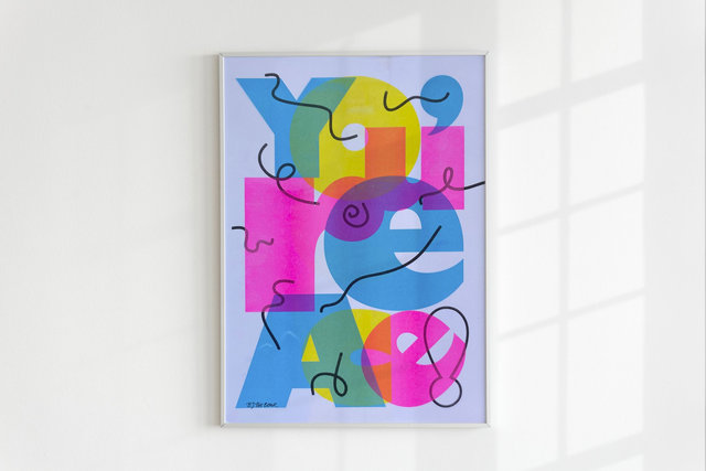 N.B. Riso prints are perfectly imperfect! You can sometimes expect imperfections, smudges, roller / track marks and misregistration.